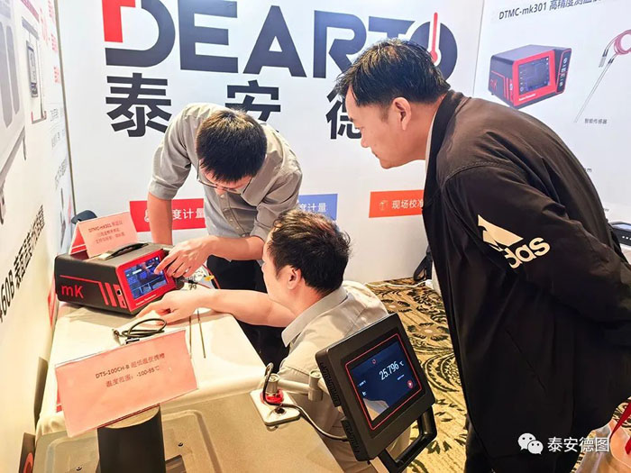 During the conference, Taian Detu brought a variety of new innovative products to the event, showing the achievements of advanced design and data analysis and processing algorithms in intelligent control systems in recent years. DTMC-mk301 new generation of multi-channel high-precision thermometer with high accuracy electrical measurement technology and intelligent interaction technology, DTS-CT100CH ultra-low temperature intelligent thermostat advanced and compact structure design, ultra-wide working range: -100°C~95°C, aroused high attention and wide interest of the participants.